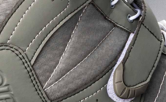 甲皮には、天然皮革なみのソフトな風合いを持つ、人工皮革「クラリーノ」(クラレ製)を採用。