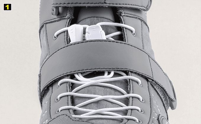 スムーズな操作性と長さ調整可能な新型シューレースストッパーの装備により、紐を結ぶ必要がなくなり、紐が解けることがなく、走行時の安全性を確保し、スピーディーな着脱が可能。